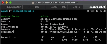 Now, it’s time for the magic you’ve been waiting for! Time to make our bot do things! Make sure your ngrok server is running on port 3000. To run your ngrok server, run the command ./ngrok http 3000